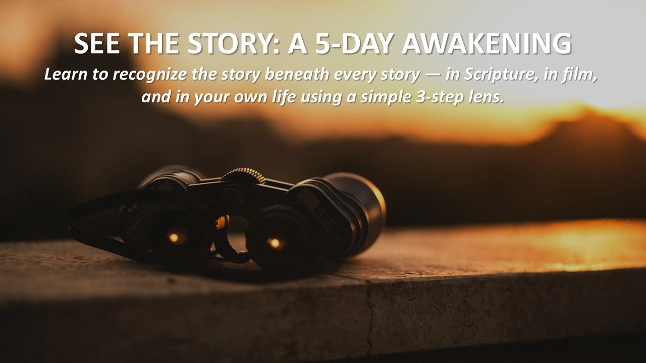 A live, five‑day experience where you’ll learn to recognize the story beneath every story — in Scripture, in film, and in your own life — using a simple 3‑step lens.